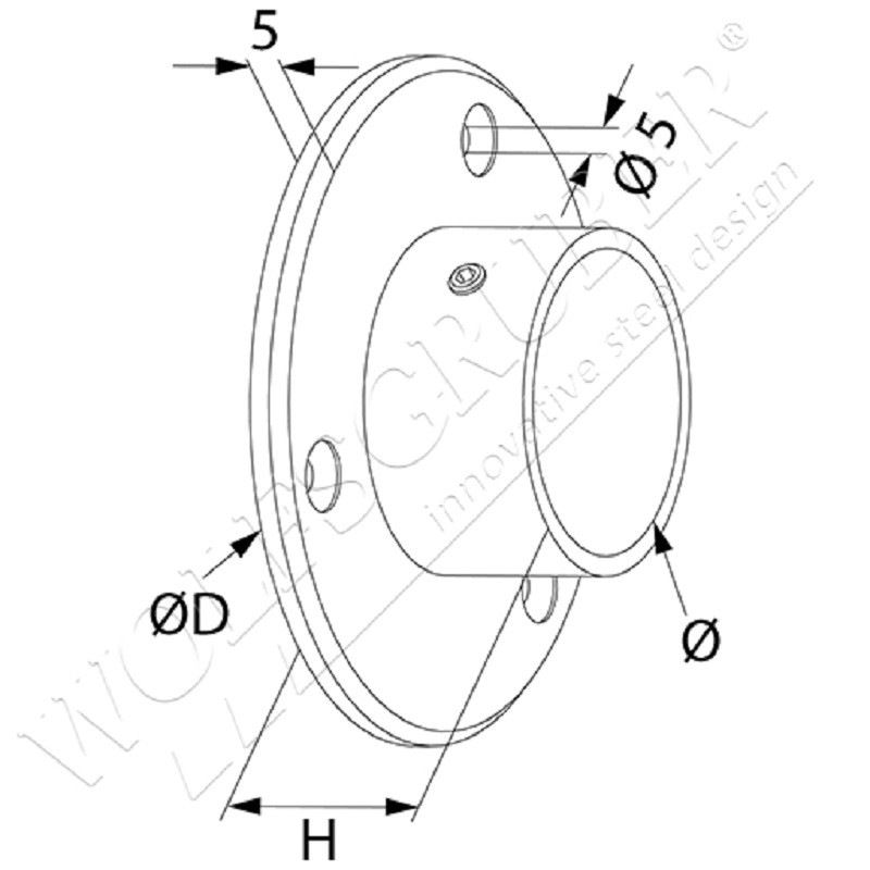 Support de main courante, en acier inoxydable 304 brossé, à souder. Rondelle de dimension 56x4 mm composée de 3 trous. Tige de diamètre 12 mm.