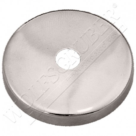 Cache-embase pour support de main courante, en acier inoxydable 304 brossé, de diamètre intérieur 12 mm. Pour tube de diamètre 60 mm, montage avec silicone.