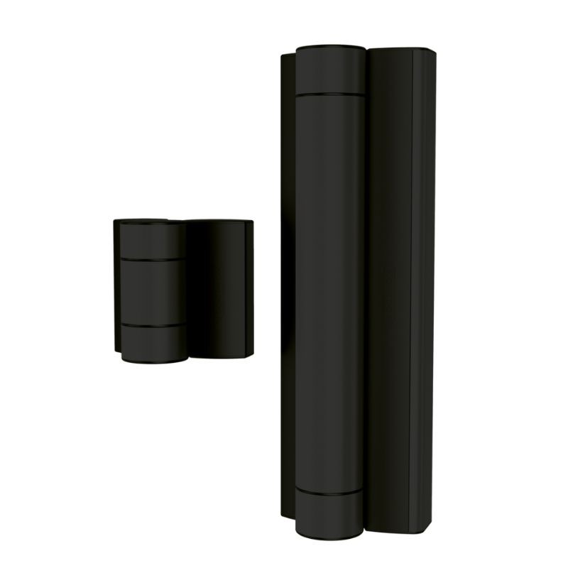 Charnière compact 180°, de couleur noir, avec rappel de fermeture pour des portes allant jusqu’à 75 kg. La force et l’a-coup final sont réglables après installation. Conforme à la norme d'accessibilité aux personnes handicapés.