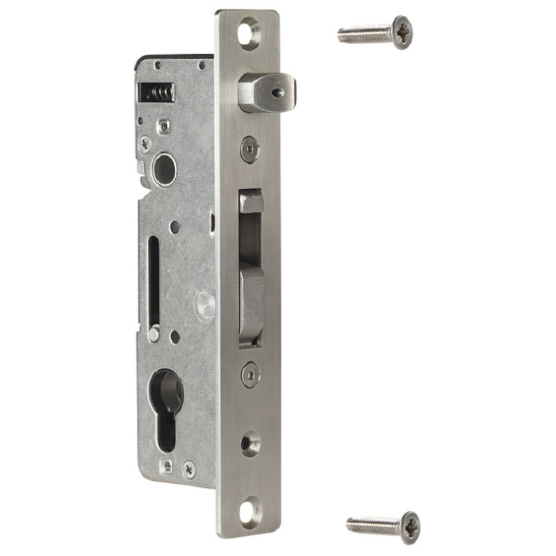 Serrure à encastrer tout inox avec axe de 35mm pour coffre à souder. Le crochet et le pêne demi-tour réglable font que c'est un modèle unique en son genre. Elle peut être utilisée dans les coffres à souder Hybrid Rèf. HWLB. Pour portails en métal.